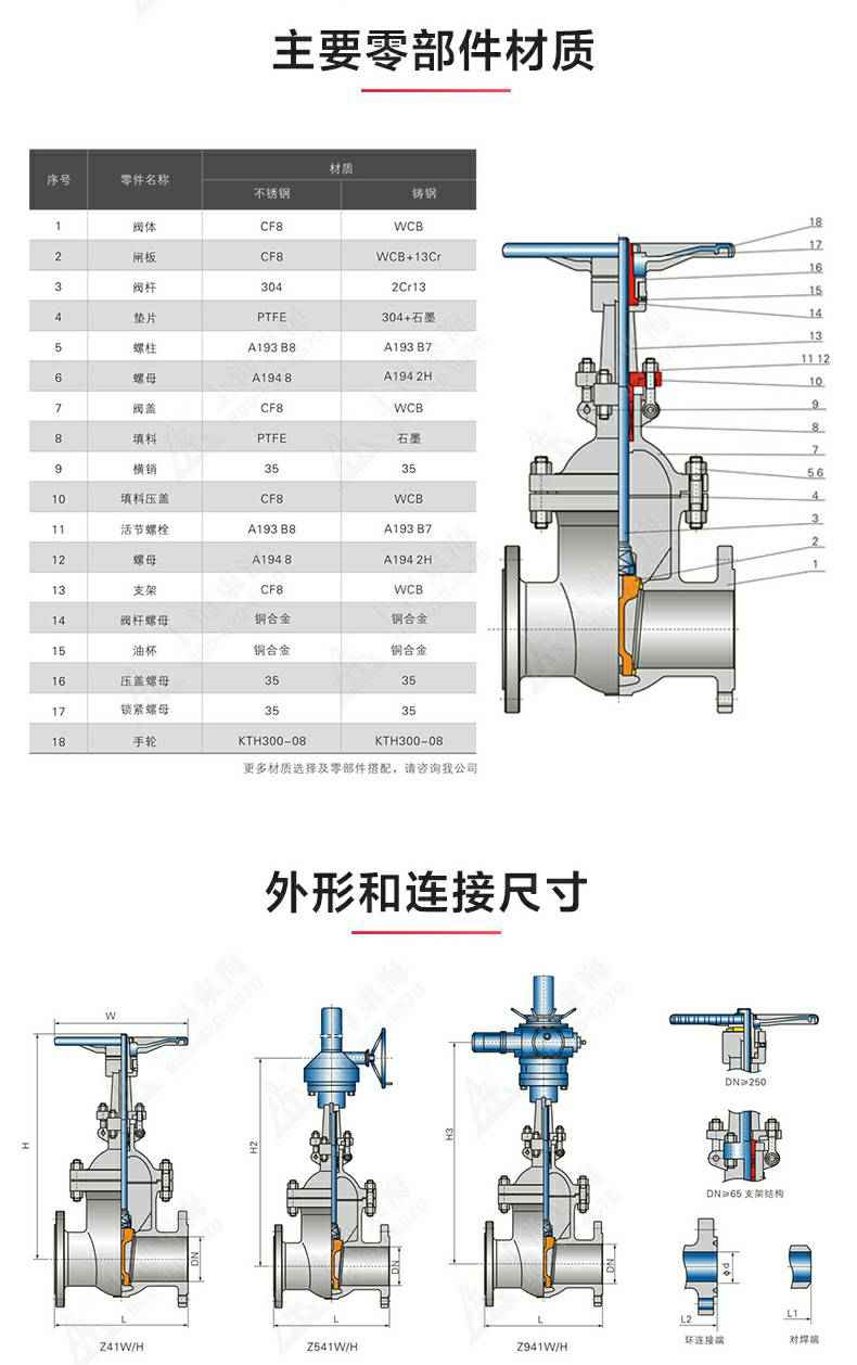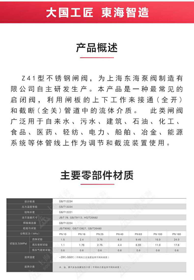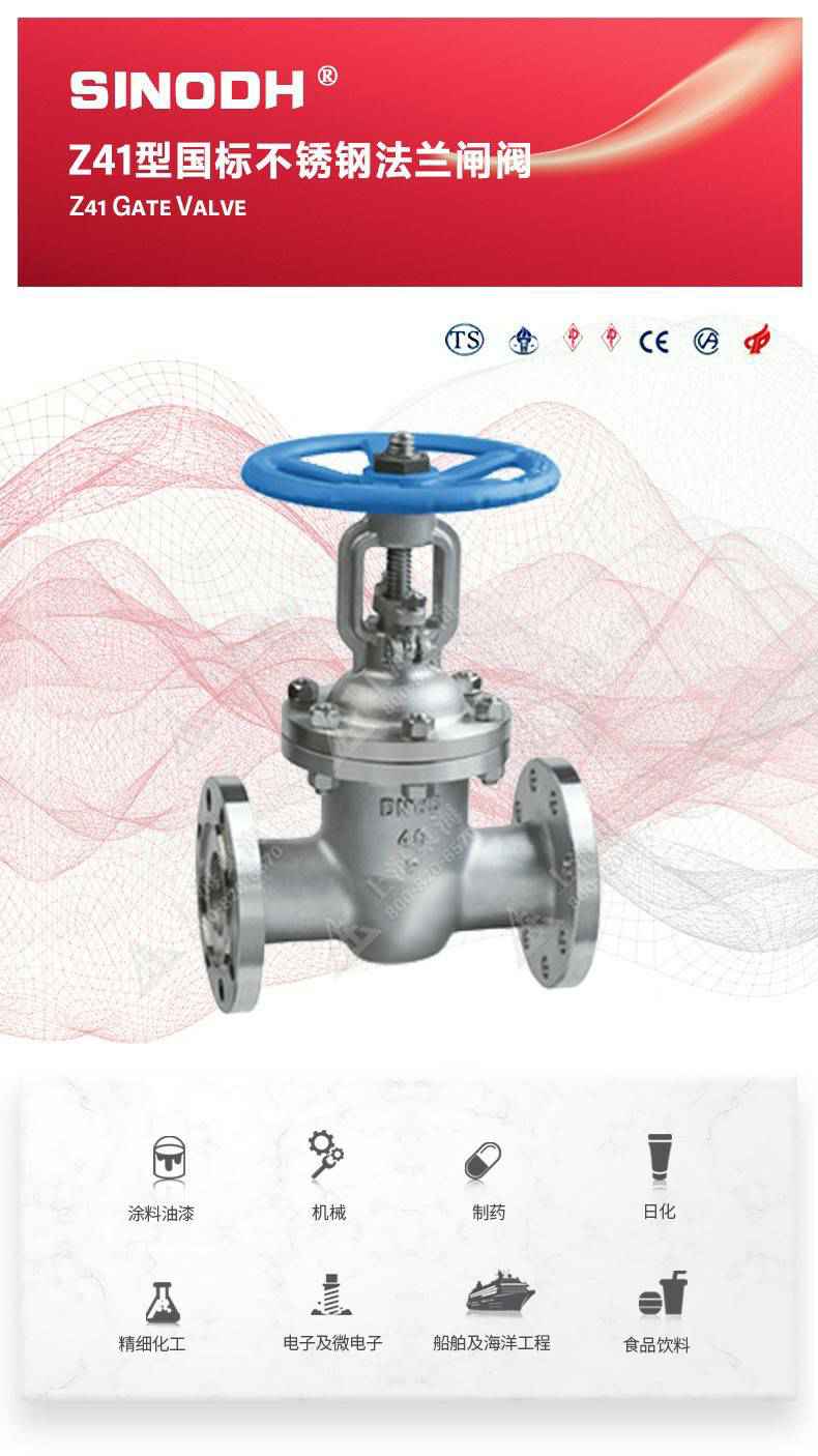 Z41型不锈钢闸阀,为银川文彦智能制造技术有限公司自主研发生产。本产品是一种最常见的启闭阀,利用闸板的上下工作来接通(全开)和截断(全关)管道中的流体介质。此类闸阀广泛用于自来水、污水、建筑、石油、化工、食品、医药、轻纺、电力、船舶、冶金、能源系统等体管线上作为调节和截流装置使用。