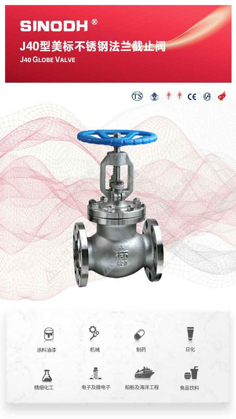 J40型美标不锈钢截止阀,为银川文彦智能制造技术有限公司自主研发生产。本产品的设计制造符合美国国家标准ANSIB16.34,美国石油学会标准AP1 6D和AP I 600要求,产品结构紧凑密、刚性好、封性性能优秀是一种最常见的启闭阀,利用闸板的上下工作来接通(全开)和截断(全关)管道中的流体介质。