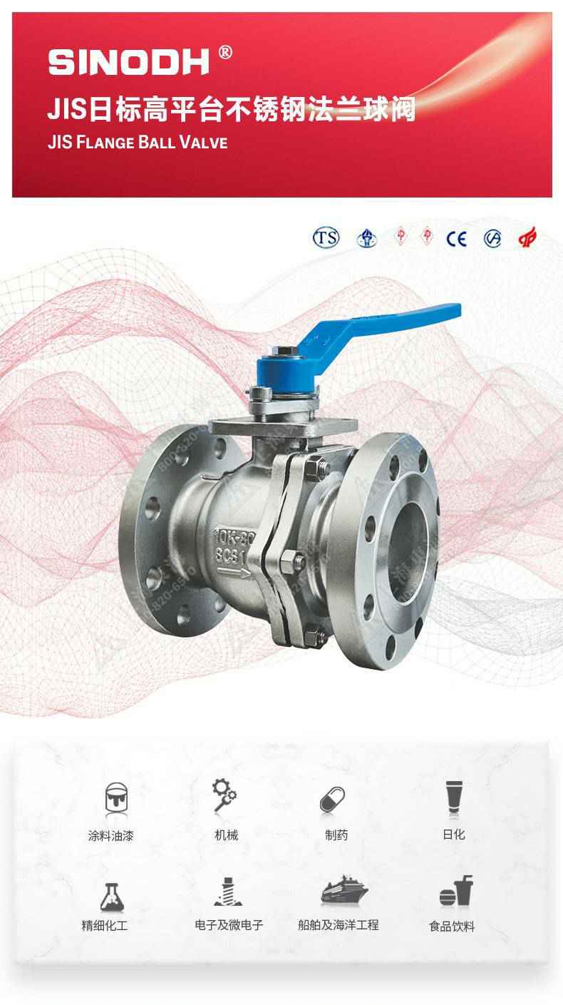 JIS日标高平台不锈钢法兰球阀,为银川文彦智能制造技术有限公司自主研发生产本产品设计制造标准符合J1 SB2071标准,该产品的球体(密封件)是浮动的,在介质压力作用下,球体能产生-定的位移并紧压在出口端的密封面上,保证出口端密封。适用于水、溶剂、酸和天然气等一般工业介质,也适用于工况恶劣的介质,如氧气、过氧化氢、乙烯等介质。