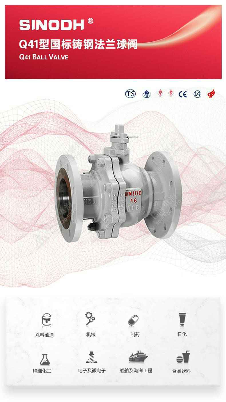 Q41型国标铸钢法兰球阀,为银川文彦智能制造技术有限公司自主研发生产。本产品设计制造标准符合GB/T12237、GB/T12224标准。该产品的球体在介质压力作用下球体能产生一定的位移并紧压在出口端的密封面上,保证出口端密封。适用于水、溶剂、酸和天然气等一般工业介质也适用于工况恶劣的介质,如氧气、过氧化氢、甲烷和乙烯等介质。